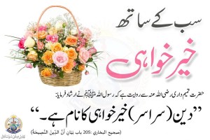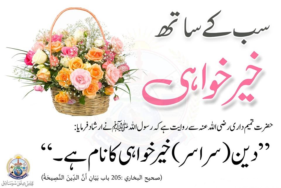 "الدین النصیحه ” دین سراسر خیر خواہی کا نام ہے۔بندوں کی آپس میں خلوص و مہربانی ہی دین کی بنیاد ہے۔